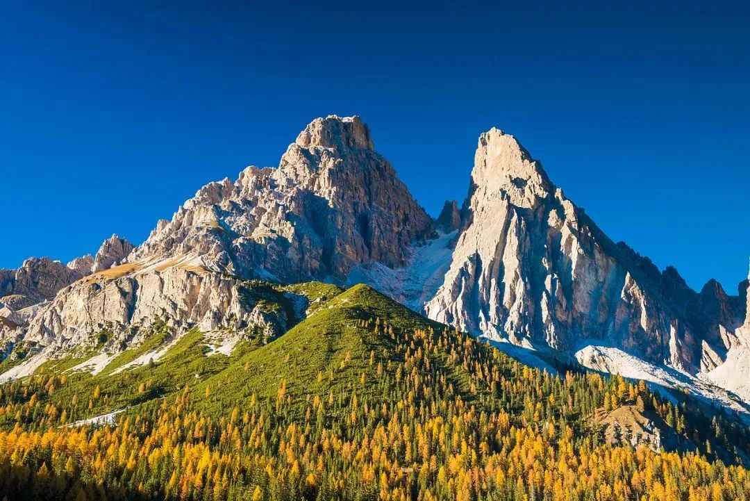 The Dolomites, located in northern Italy, are often hailed as one of the most beautiful mountain ranges in the world, a veritable left by God in the Alps. With its spectacular peaks, glaciers, waterfalls, and canyons, autumn is the ideal time to visit. The alpine meadows, ablaze with autumn colors, attract a large number of tourists eager to explore and immerse themselves in the charm of nature. At dawn and sunset, the mountains are bathed in a soft pink glow that gradually turns into a deep red, creating the famous "Alpe Adria Light" that no visitor should miss. The Five Finger Peaks, located in the heart of the Dolomites, are a group of rocky peaks known for their unique shape. It is a popular destination for rock climbing and mountaineering, and it also boasts numerous historical sites and war memorials. The Dolomites are home to many glaciers, such as the Marmolada Glacier and the Falesia Glacier, which not only offer magnificent views but also serve as excellent venues for ice climbing, skiing, and other winter sports. The Ortles-Cevedale Glacier, the largest in the Dolomites, is also the location of the highest peak in the Alps. Tourists can take a cable car to the top of the glacier to enjoy a panoramic view of the surrounding landscape.