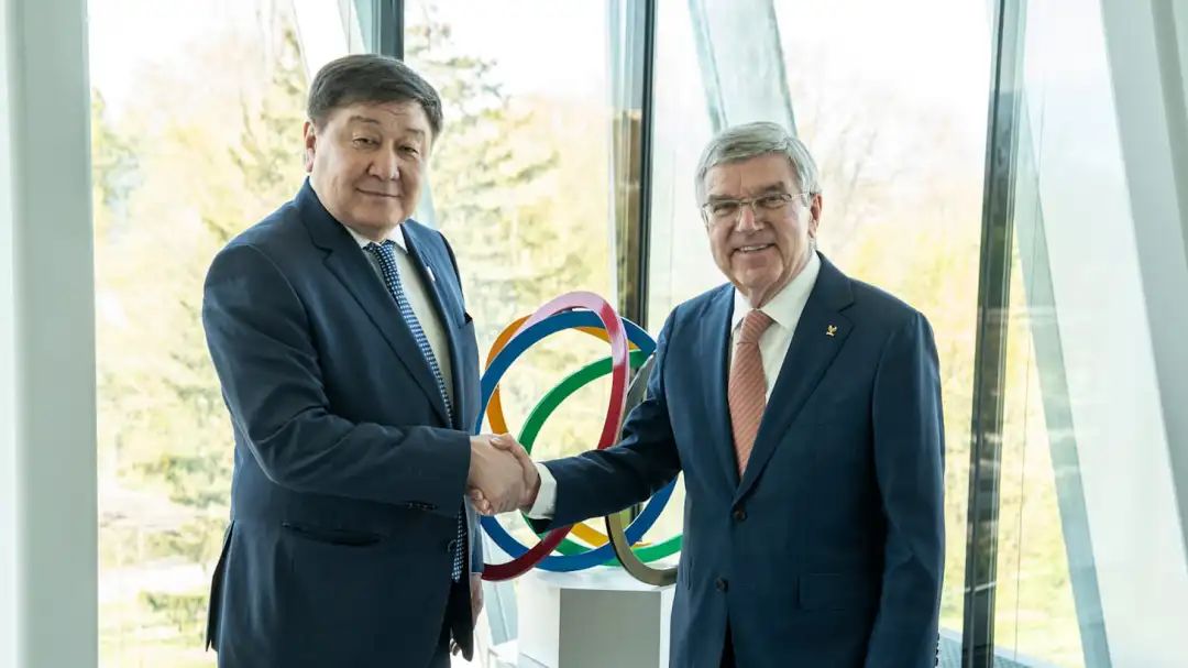 © IOC / Greg Martin - The President with Umbetaly Toktoralievitch Kydraliev, Kyrgyz Republic NOC President. President Bach welcomed Umbetaly Toktoralievitch Kydraliev, President of the National Olympic Committee of the Kyrgyz Republic, who was accompanied by First Vice - President Sadyr Mamytov. The topics of discussion between the two sides included the opportunities and challenges facing sports in Kyrgyzstan and Central Asia.
