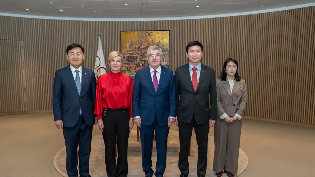 © IOC / Greg Martin - Thomas Bach and Kolinda Grabar - Kitarović with the delegation from the Korean Sport and Olympic Committee. The IOC President welcomed a delegation led by Seung Min Ryu, the recently elected President of the Korean Sport and Olympic Committee and an Olympic champion, to the Olympic House. Ryu Seung - min was accompanied by Gyeongbuk Governor Kwan Young Kim and Soo Hyun Myung, Director of the Ministry of Culture, Sports and Tourism of the Republic of Korea. The meeting discussed South Korea's interest in hosting a future edition of the Olympic and Paralympic Games. Subsequently, a comprehensive presentation on the project was given to Kolinda Grabar - Kitarović, President of the IOC Future Host Commission for the Olympic Games, and members of the Olympic Games Department.